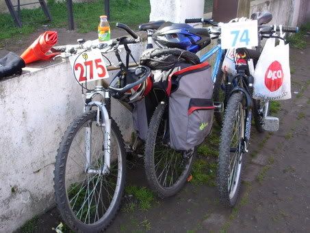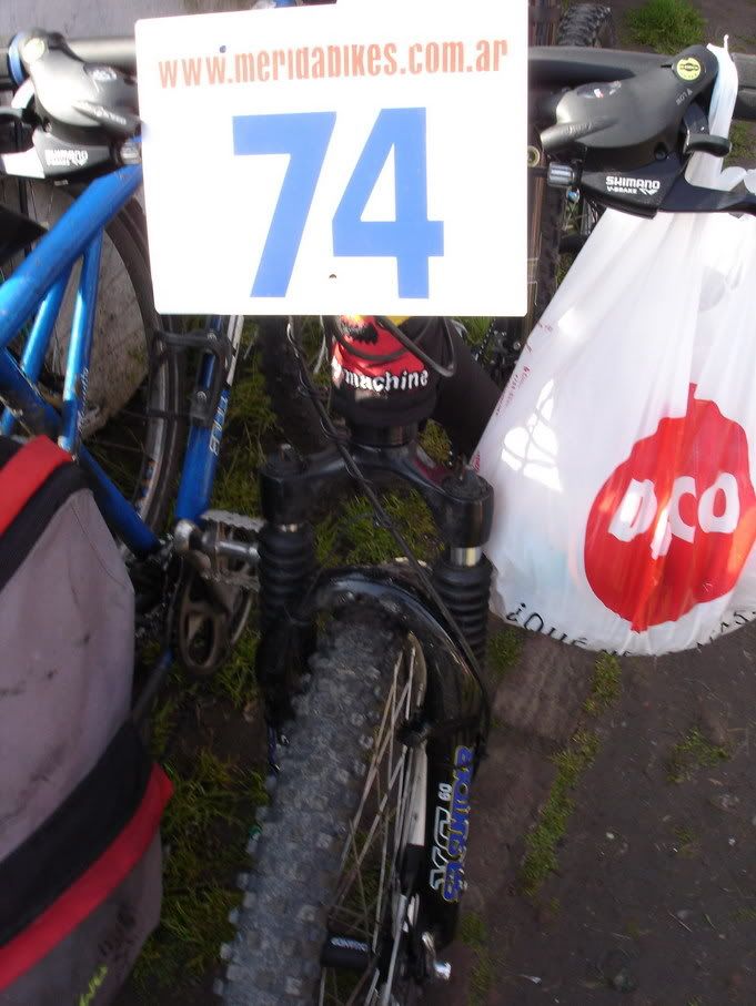 -la 2da foto q vemos es la bici de la ritó con una rueda pr0 doble pared de ruta q pinchó un corredor antes de arrancar. Lo q hice fue prestarle la rueda delantera al corredor para q no se quede con la bici en la mano.. ya q tenia flor de bici y no quería perderse el evento. -no, no es photoshop-